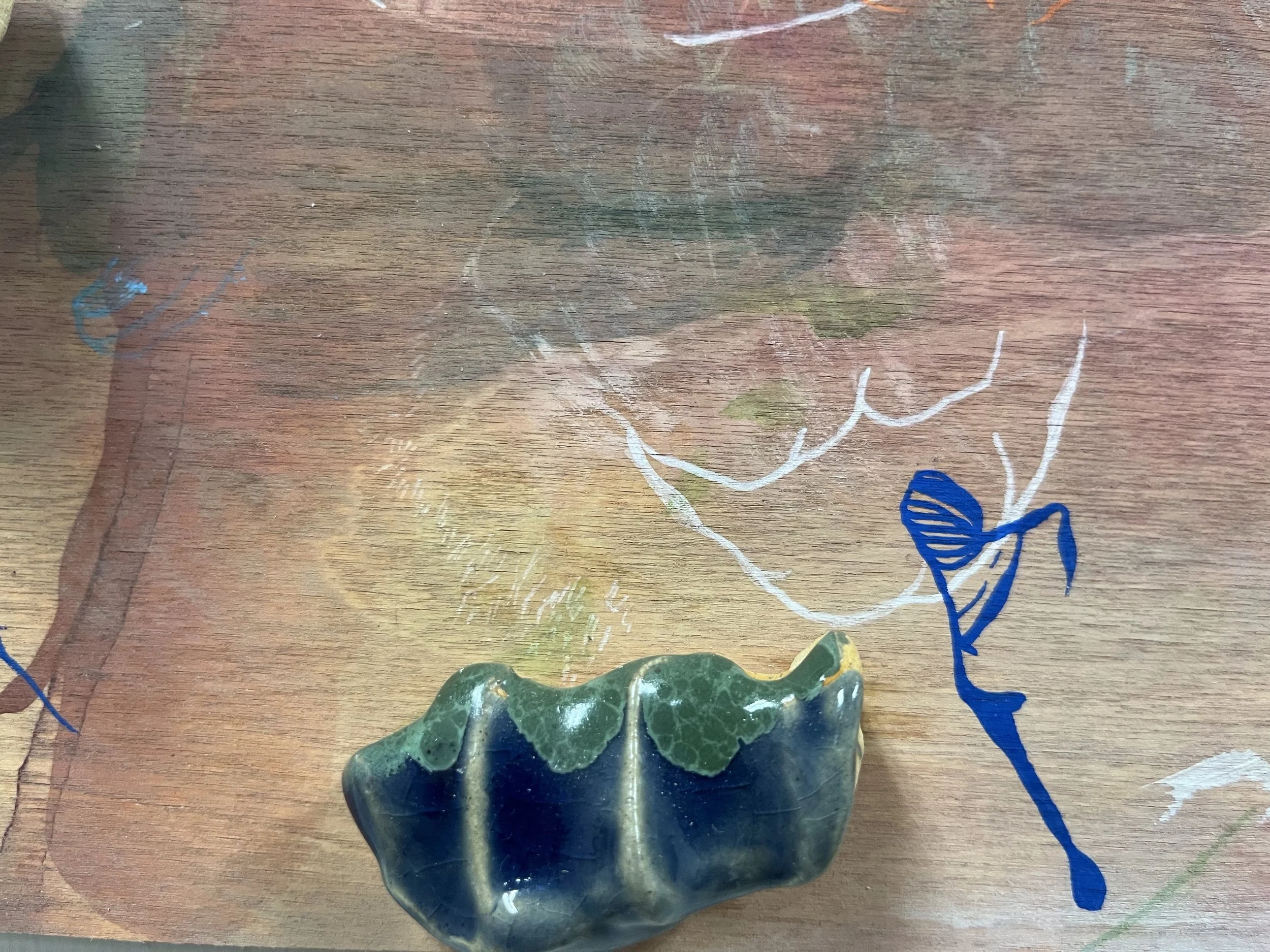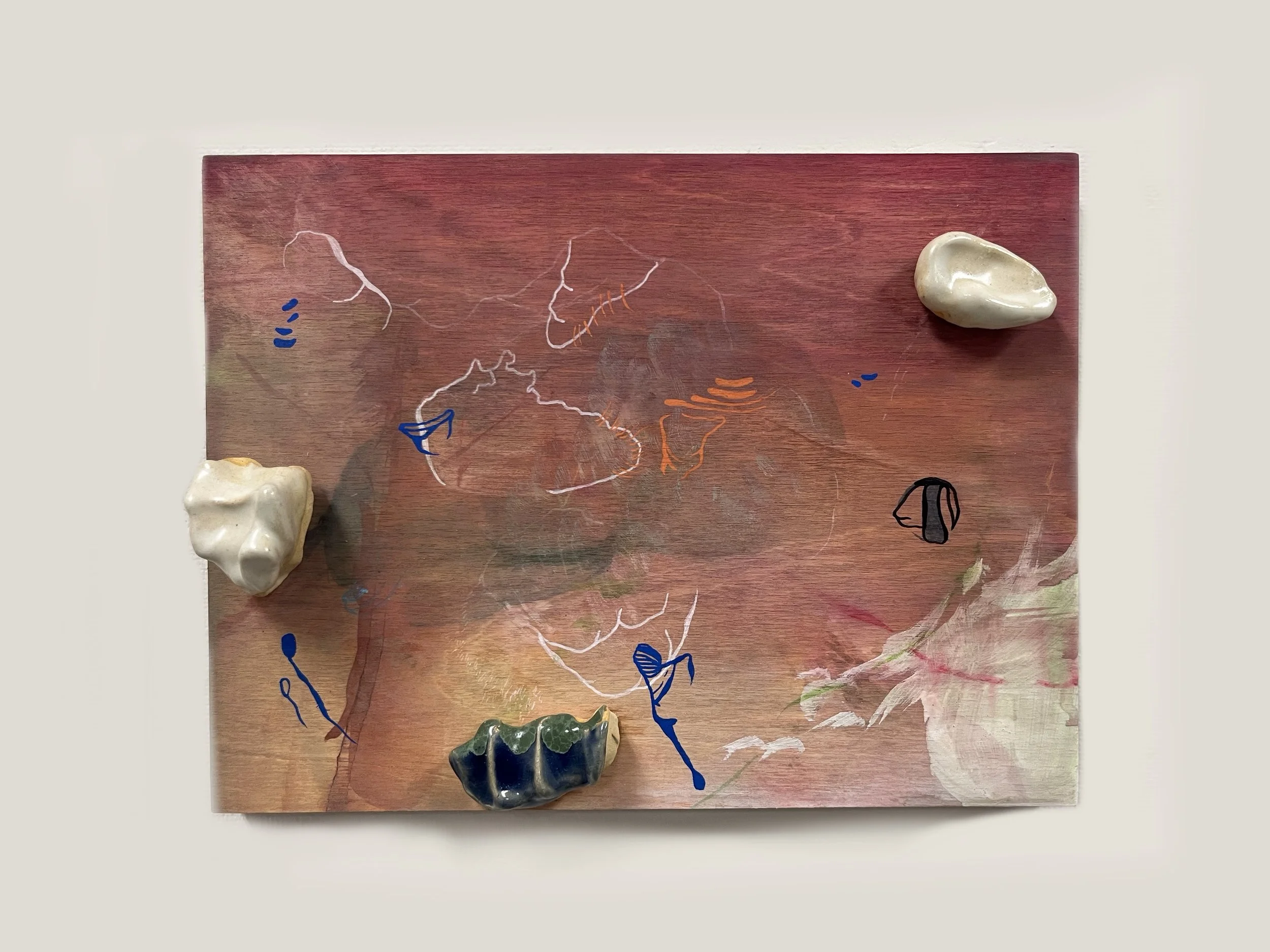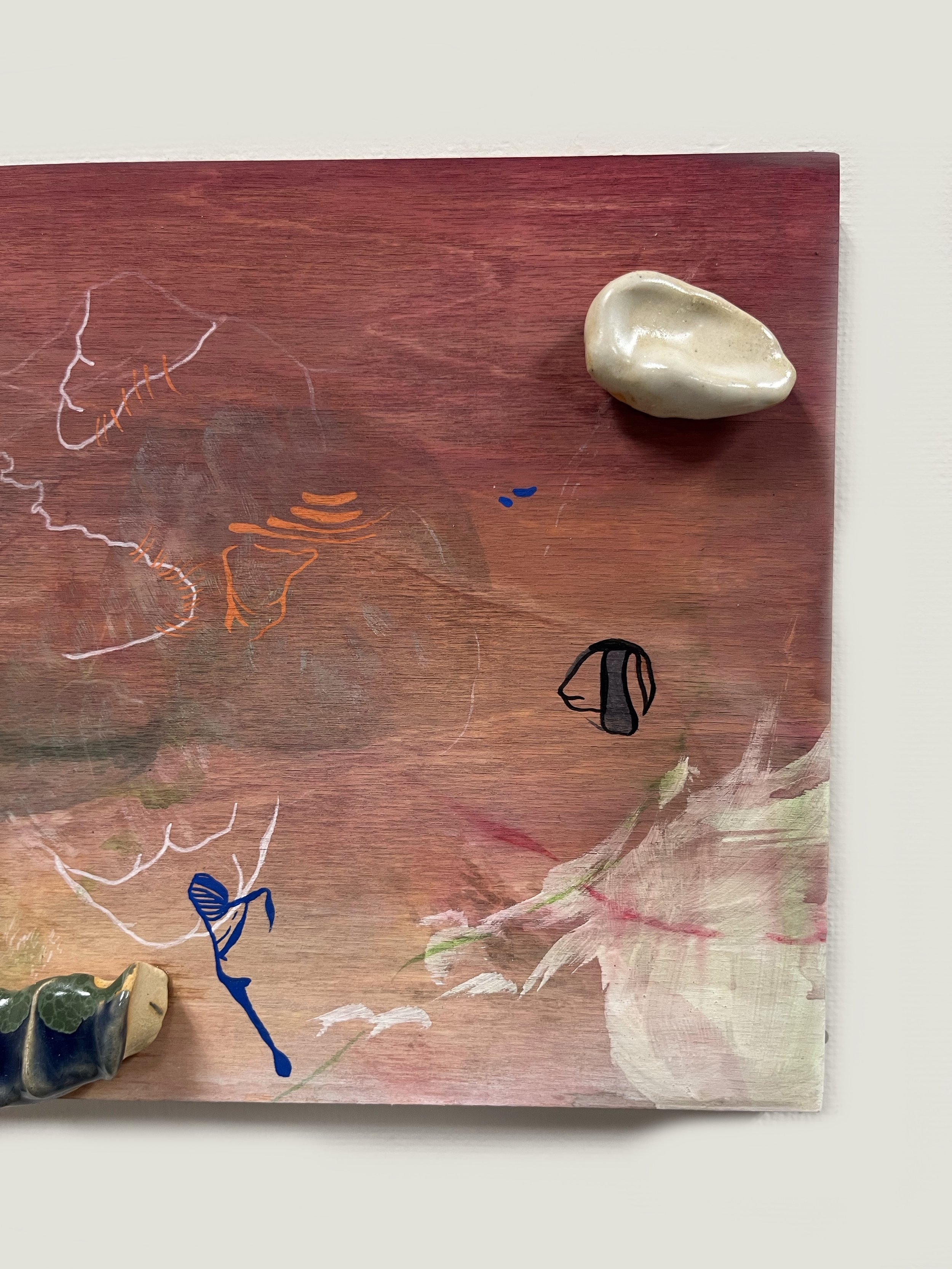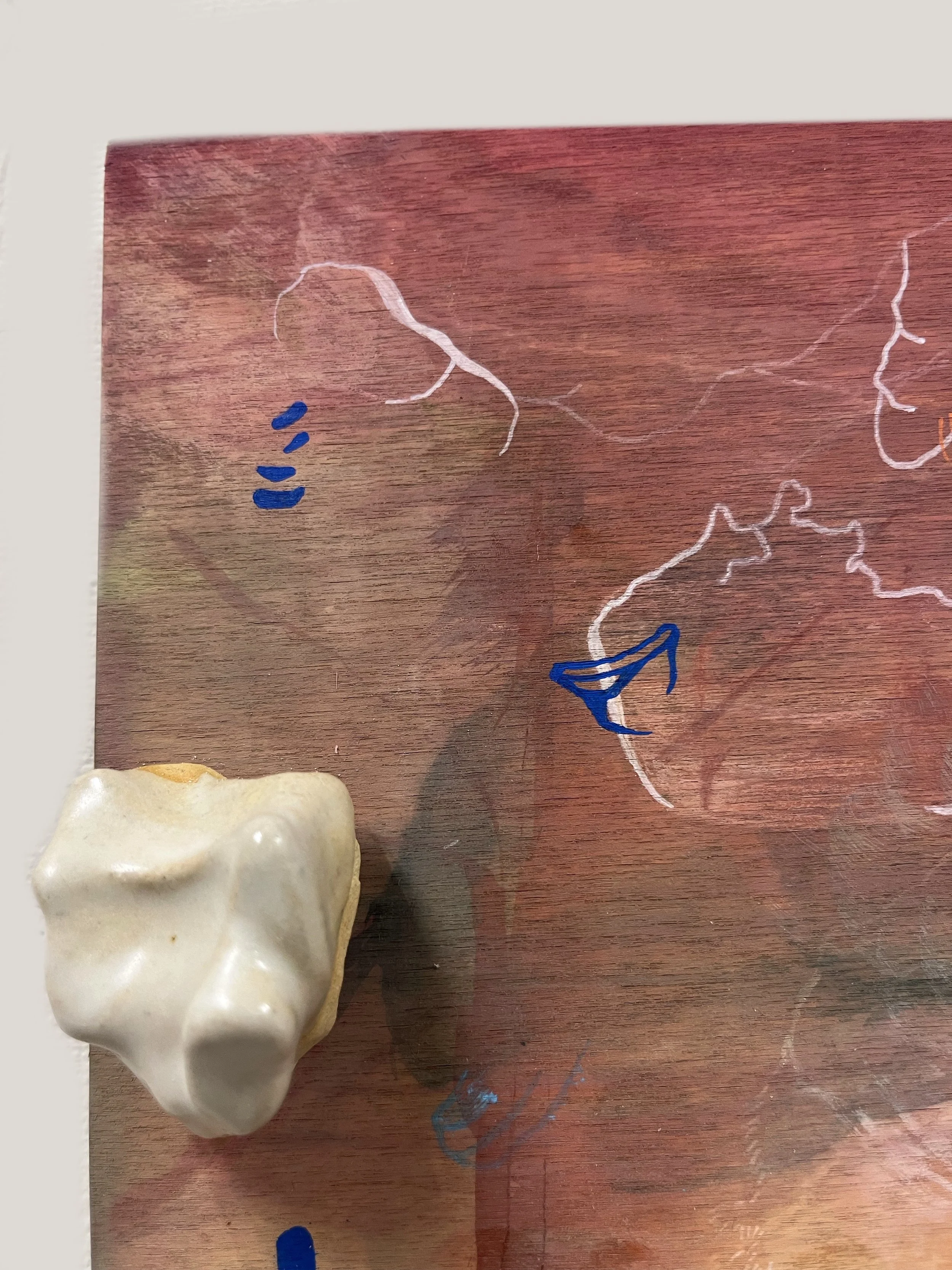 It’s the way it comes | 2024 | ceramic, posca markers and water colours on wood panel | 14”x11”